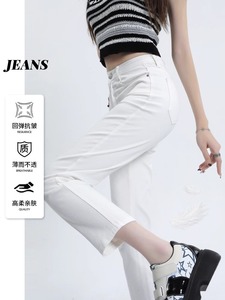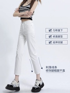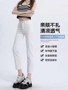 女性用ホワイトジーンズ2025新作夏薄手ハイウエストスリムストレートレッグ8点9点小柄シガレットパンツ
