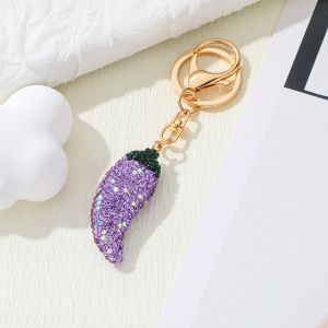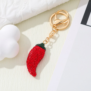 工場直販、ファッショナブル、クリエイティブ、シンプルで絶妙な両面ダイヤモンドがちりばめられた赤いピーマン吊り下げバッグ車のキーホルダーバッチ