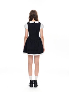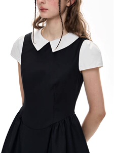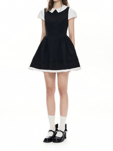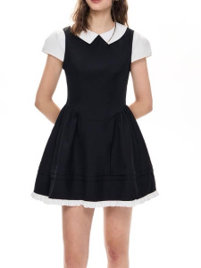 RomanceNanci フェイクツーピースドレス スリムフィット 半袖 リトルブラックドレス チュチュスカート Aラインスカート