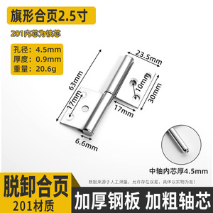 201ステンレス「厚さ2.5」ワン 5inch 取り外し可能40幅ヒンジ132mm