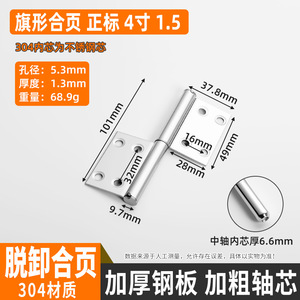 201ステンレス鋼「標準厚1.5」1個 4inch着脱式ヒンジ101mm