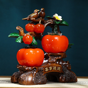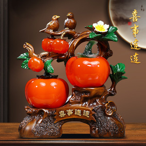 喜事连连事事如意柿柿如意柿子摆件客厅入户玄关酒柜装饰搬新家乔