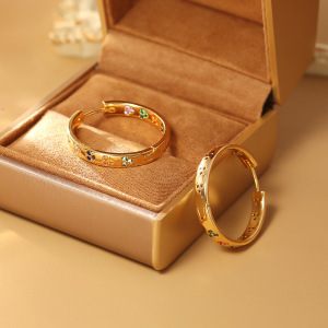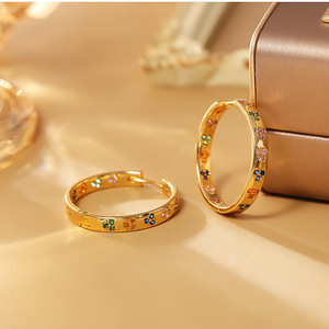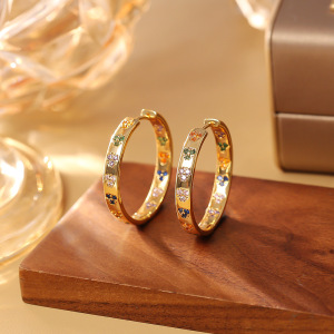 カラフルなジルコンラブサークルイヤリング、ハイエンドメタルスタイルS925シルバーニードルイヤリング、パーソナライズされたファッショナブルなイヤリング