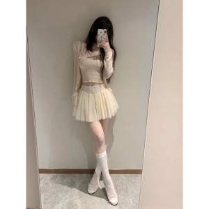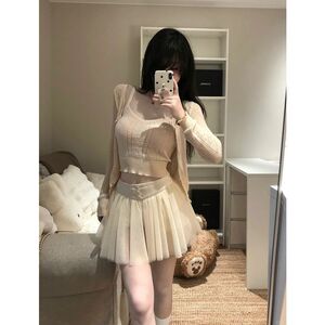 针织开衫+吊带背心+半身裙