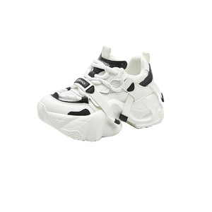 2025 春と秋の本革お父さん靴女性の英国厚底カラーブロックスニーカー女性のレースアップカジュアル学生靴女性