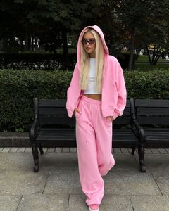 国境を越えた貿易 AliExpress 婦人服新しいジッパーフード付きスポーツカーディガンレースアップパンツツーピースカジュアルスーツ