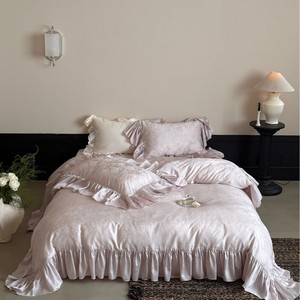 フレンチプリンセススタイルサマーレンチングテンセルジャカード4点セットリヨセルヌードスリーピングシルキーホームベッドシーツとキルトカバー