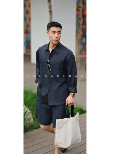 【アンカー同風夏爽やかセット】2025夏 リヨセルリネンシャツショーツセット メンズ