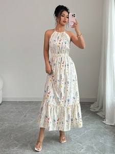 2025年クロスボーダーホットスタイルElenzgaプリントサスペンダーウエストゴムカジュアルドレスボヘミアンスタイル