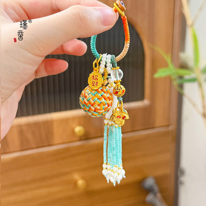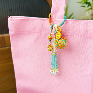 Jinyan 強力な色保持サンドゴールドグリーンラッキーライオン籐ボールキーハンギング携帯電話手作りペンダントタッセルカーハンギングバッグハンギング
