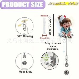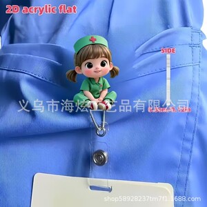 クロスボーダー漫画新しいかわいい小さなナースアクリルバッジ伸縮リールクリップドクターナースフラット ID クリップ