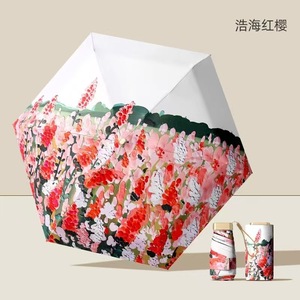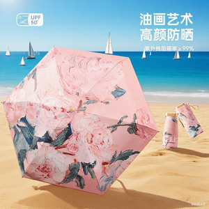 [Wowカスタマイズ] フラット 50% off 油絵 新しいポータブルビニール日傘 晴雨兼用傘 日傘 マニュアル
