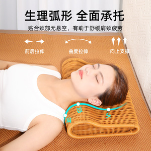 中空籐枕マット、夏用特別な竹枕、汗防止、洗える、中空通気性頚椎冷却枕