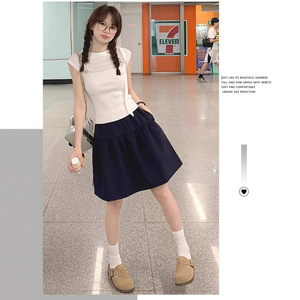 新しい日本製ネイビーブルースカート女性の夏薄い2025新しいハイウエストスリムスカート小柄な5点スカート