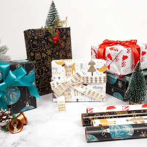 2025 越境特大包装紙 3m クリスマス楽しい包装紙漫画サンタクロースヘラジカギフトボックス包装