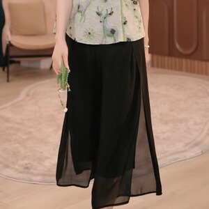 XL7383 Jialinアクアトップ+黒スリットパンツ