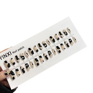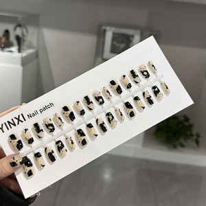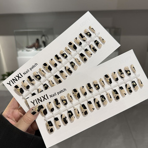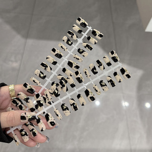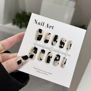 预制甲墨白金箔精品穿戴式美甲中方黑白泼墨简约随性网红假指甲贴