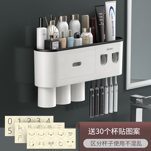 置物架双挤牙刷免打孔漱口刷牙杯套装卫生间收纳牙刷架带挤牙膏器