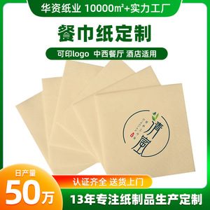 本色竹浆纸巾西餐餐巾纸 商用酒吧咖啡饭店订做广告散装方巾纸厂