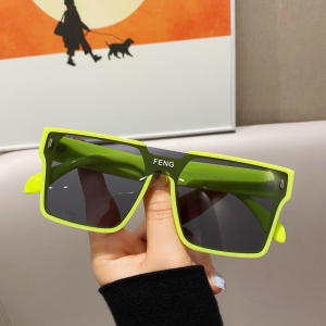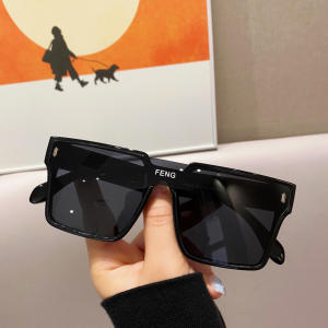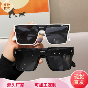 24 新しいスクエアフレームラージフレームオールインワンサングラスファッショントレンドパンクスタイルストリートスタイルメガネ日焼け止め FENG サングラス