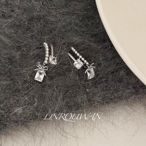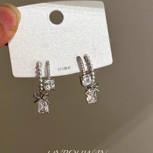 春夏に適したフラッシュジルコンシュガーキューブリボン気質イヤリング、女性用、ハイエンド、軽い高級感、美しいイヤリング、女性用イヤリング