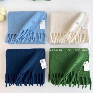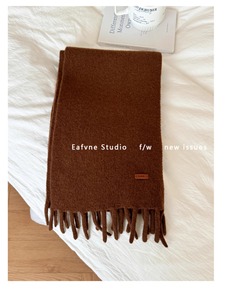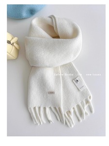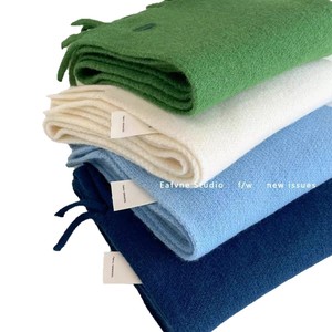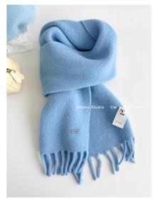 韩国甄选100%纯羊毛流苏围巾女秋冬高密纯色加厚保暖百搭毛绒围脖