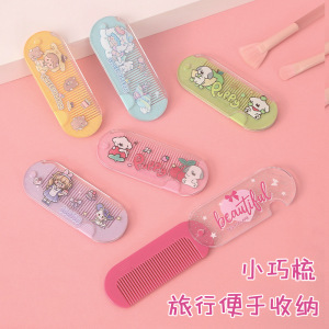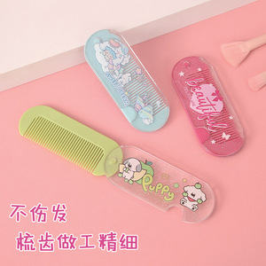 折りたたみ小さなコーム子供の漫画の女の子ポータブル女性インプラスチックストレートヘアコーム旅行学生コンパクトコーム