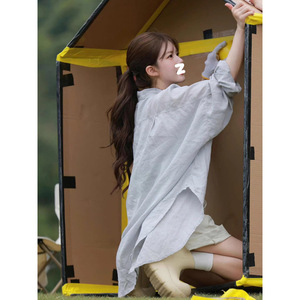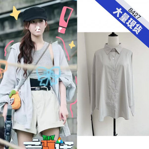Zhao Lusiと同じスタイルのブルーグレーの日焼け止めシャツジャケット女性用春と夏の新しい韓国スタイルのトップルーズレイジースタイルシャツ