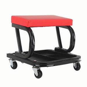 ツールトレイ付きユニバーサル自動車修理ツールチェア、多機能収納スツール、ユニバーサルホイール、可動U字型レザー自動車修理スツール
