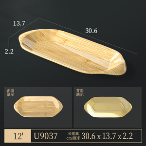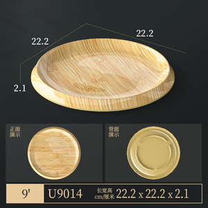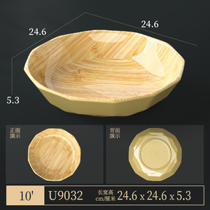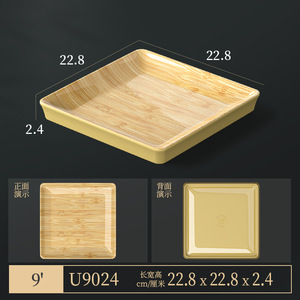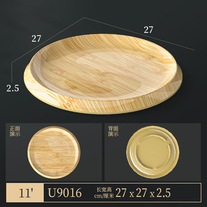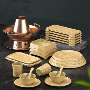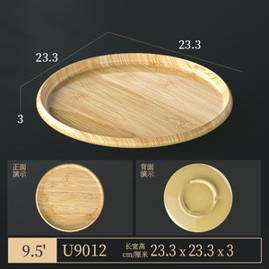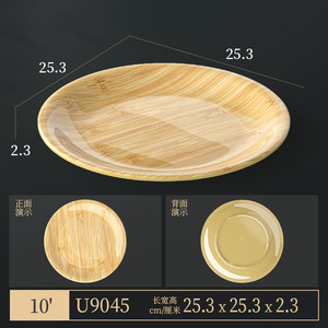 竹木纹密胺餐具火锅店配菜盘商用仿瓷餐厅菜盘餐盘圆盘烤肉牛肉盘