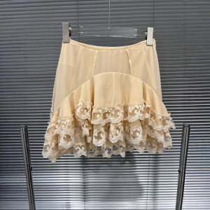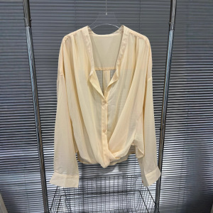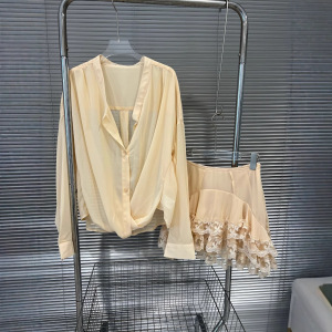 2025 夏 V ネック微透け長袖シャツレディース春夏新作レーススカートツーピーススーツ
