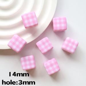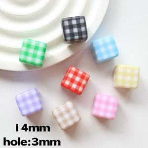 8 色チェック柄カラーチェック柄スクエアビーズプリントスクエアストレートホールビーズ DIY 携帯電話チェーンペンダント素材ルースビーズ