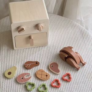 イン子供用木製エアフライヤーおもちゃウッドカラーローストチキンバーベキューバーベキュープレイハウス子供部屋の装飾