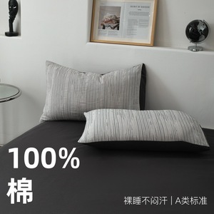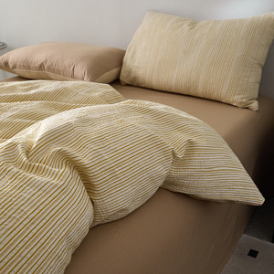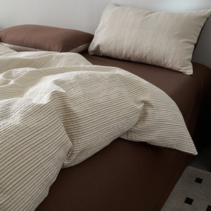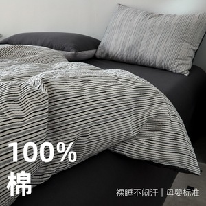 ブラックグレー わびさび風ストライプ クラスA 純綿4点セット 純綿ベッドシーツ 掛け布団カバー 3点セット 寝具4点セット
