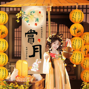 中秋節のランタン雰囲気シーン装飾吊り布ショッピングモール店舗イベントテーマ写真チェックイン背景壁小道具