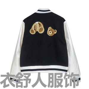 外贸批发PA天使潮牌断头熊刺绣logo拼色夹克情侣装棒球服外套