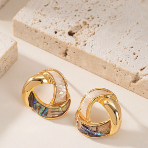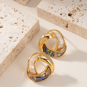 シルバー針フレンチエレガントで絶妙な小さな香りのオイルドリップ天然アワビ貝のイヤリング女性のニッチなパーソナライズされたデザインのイヤリング
