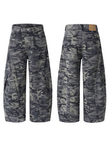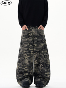 LKTM メンズ アメリカン レトロ 迷彩 ワイドレッグ オーバーオール 男女兼用 トレンド ブランド ゆったり リバースウェア デザイン ワイドレッグ パンツ