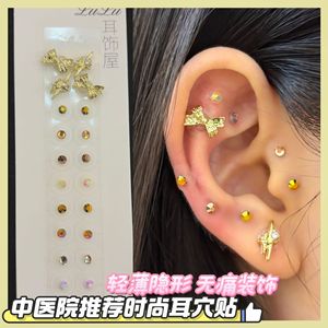 ライトラグジュアリーゴールデンリボン耳介ジュエリースーパーフラッシュダイヤモンド2025インターネットセレブ人気イヤリングアクセサリー耳介ジュエリー