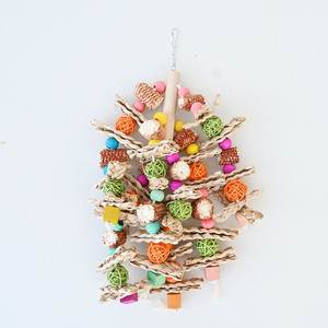 中型および大型のオウム鳥のおもちゃ、大きなわらのコーンコーンの籐ボールを噛む、歯ぎしり、噛む、退屈を和らげる、遊び用品