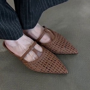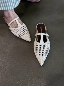 シープスキンバージョン〜フレンチレトロスタイルレディース中空つま先ハーフスリッパレディースサマーアウターチャンキーヒールワンストラップサンダル