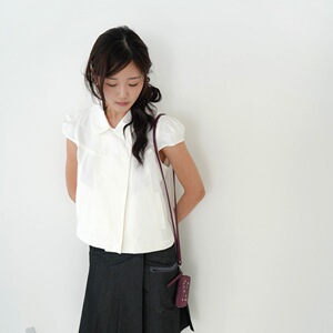 韓国女性のシックな夏のレトロな日本のニッチデザインダブルブレストかわいいパフスリーブ半袖シャツトップ