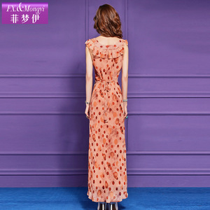 Feimengyi フリルプリントドレスレディースサマードレスフレンチハイエンドライト大人フェミニンな気質ホリデーロングドレス