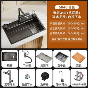 【双轨道+集渣】6846/纳米黑-4【水槽+4挡宝塔龙头+净水+洗杯器】