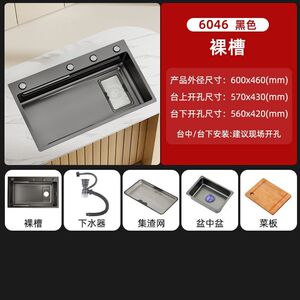 【双轨道+集渣】6046/纳米黑-2【裸槽 无龙头套餐】