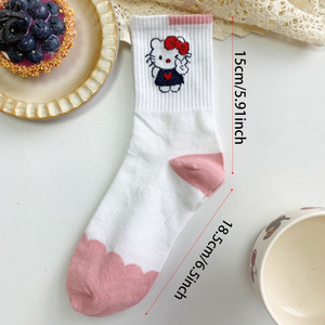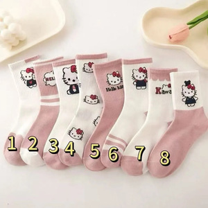 夏の新しい女性用ソックス、多用途でかわいい漫画の日本のピンクの女の子KT猫スタイルの学生用女性用ミッドカーフソックス