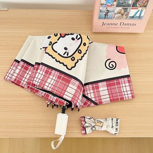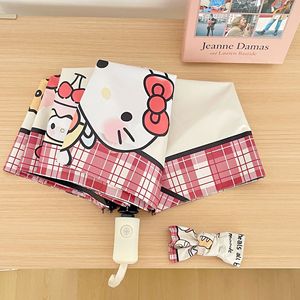 卡通日常凯蒂猫雨伞学生专用防晒黑胶遮阳伞三折八骨折叠全自动伞
