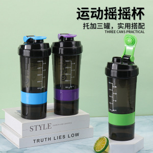 インターネットセレブ人気の三層シェイクカッププロテインパウダーミキシングミルクシェイクカップスケール付きポータブルプラスチックフィットネススポーツウォーターカップ