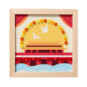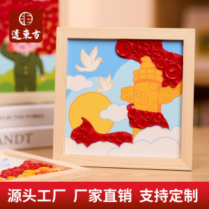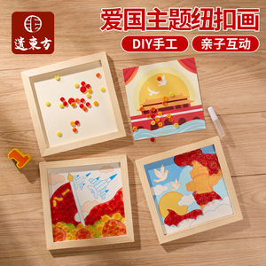 国庆节diy制作爱国主题纽扣画自己做的手工手作小礼物幼儿园礼品