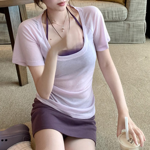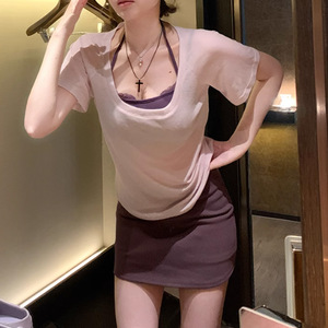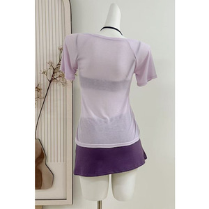 2025夏 スモークトワイライト やや透け感Tシャツ 痩身スカート 美背中セット 夏用胸パッド付き3点セット